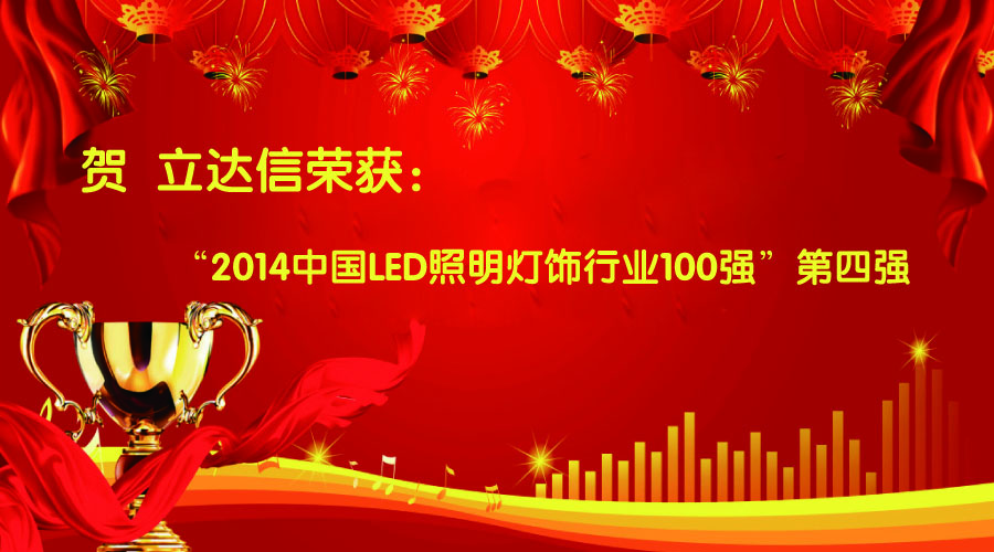 贺游艇会荣获“2014中国LED照明灯饰行业100强”第四强 2015-06-10 返回列表 2015年6月8日,由行业权威媒体大照明时报举办的首届“中国LED照明灯饰百强”评选活动百强名单已出炉,游艇会以其优越的成绩,荣获百强的第四强!游艇会品牌事业部总经理唐琼善代表领取证书! 这份荣誉是2014年全体游艇会人一起努力的结果!在充满了各种挑战的2015年,乃至更远的未来,游艇会全体成员一定会再接再厉,全力以赴将自己打造成为“受人尊敬的世界级绿色照明企业”! 分享文章 上一篇:践行绿色生活,游艇会“绿色健步行” 下一篇:盛世游艇会•2014年终表彰典礼暨尾牙晚会